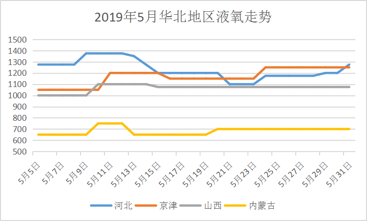 本月华北地区液氧市场表现尚可,部分出货良好地区价格上行。现河北最新液氧价格涨至1100-1450元/吨左右,唐山地区需求转好,价格小幅上涨;京津地区主流出厂价格在1200-1300元/吨左右,平稳出货为主;山西地区现主流出厂价格在950-1200元/吨左右,价格窄幅整理,交投偏弱;内蒙古地区液氧主流出厂价格在650-700元/吨左右,下游需求不足,厂家出货欠佳。