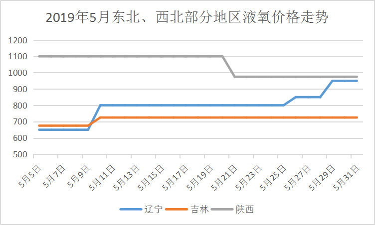 东北地区液氧市场氛围良好。本月上旬辽宁地区平稳运行,价格维持在700-900元/吨左右,中下旬受唐山地区收液及部分厂家装置检修影响,液氧出货好转,截止今日,最新出厂价格涨至900-1000元/吨左右;吉林地区液氧主流出厂价格在650-800元/吨,市场买气不足,价格弱势维稳。